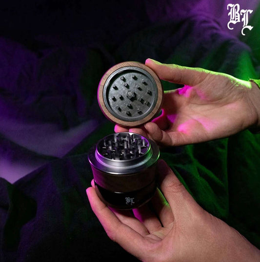 Black Leaf Holz-Grinder 4-tlg. mit Violettglas