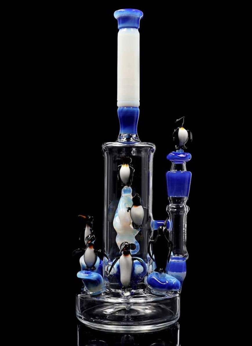Dieses tolle Meisterwerk, die Best-of-April 2025-Glaskunst-Bong von EHLE.®, wurde jedenfalls schon von neun niedlichen Pinguinen gekapert. Diese fühlen sich auf und in dieser fantastischen Bong sichtlich wohl, die durch die blau-weiße Farbgebung auch die Wohlfühltemperatur unserer Watschelfreunde ausstrahlt.